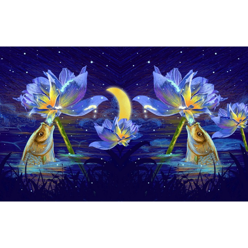 Теги: рыбы, месяц, ночь, лотосы, цветы, озеро, графика, для ванной