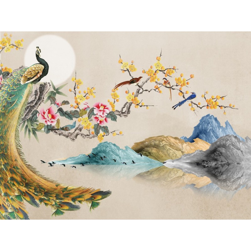 Теги: япония, солнце, павлин, цветы, дерево, горы, птицы,