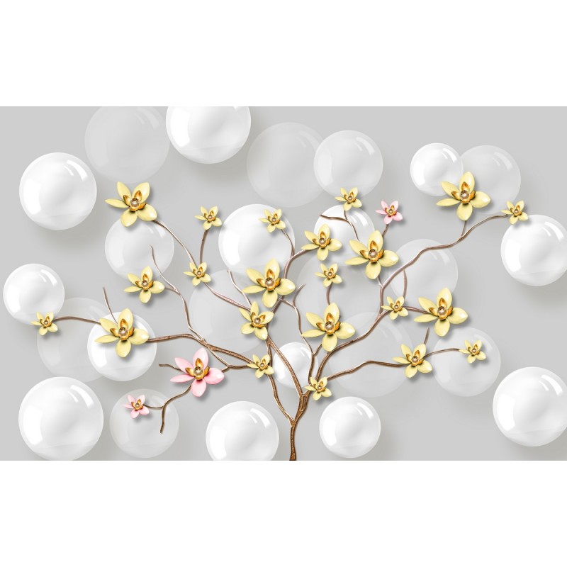 Теги: шары, цветы, круги, дерево, пузыри, куст, золото, для гостинной