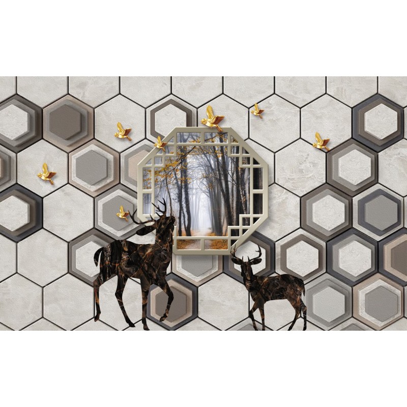 Теги: лес, окно, птицы, соты, олени, деревья, пейзаж