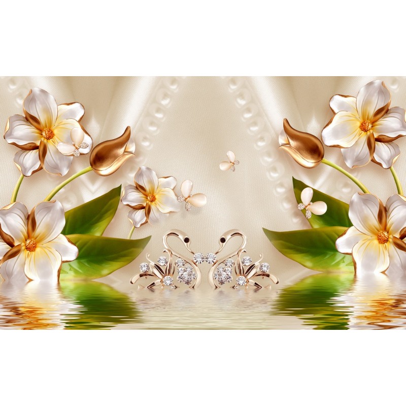 Теги: Свадьба, лебеди, птицы, золото, цветы, жемчуг.