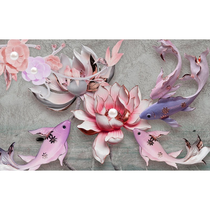 Вы можете заказать фреску "Жемчужный лотос в кругу розовых карпов" под Ваши размеры для размещения в жилом помещении или для декорирования внешней стены, дома (здания)