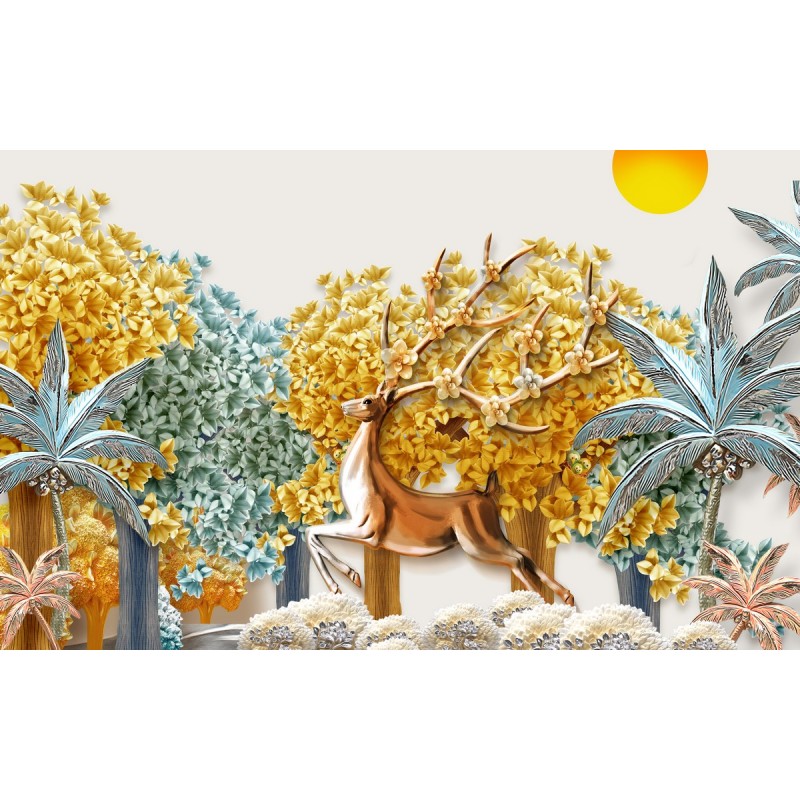 Теги: олень, природа, животные, золото, деревья, для детской, для спальни, для холла