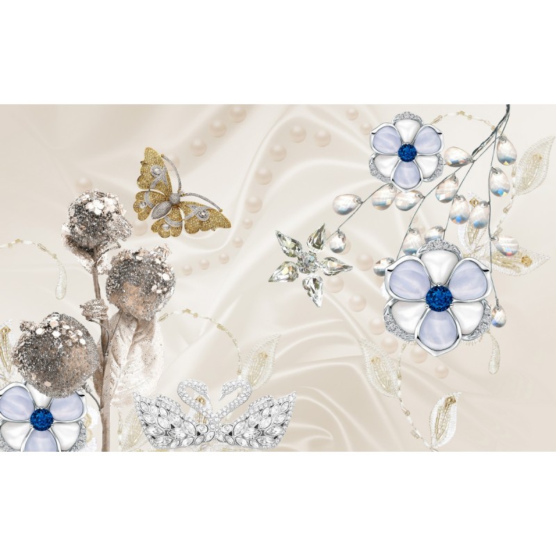 Теги: цветы, лебеди, птицы, хрусталь, для гостинной, для холла, для коридора, 3D, бабочки