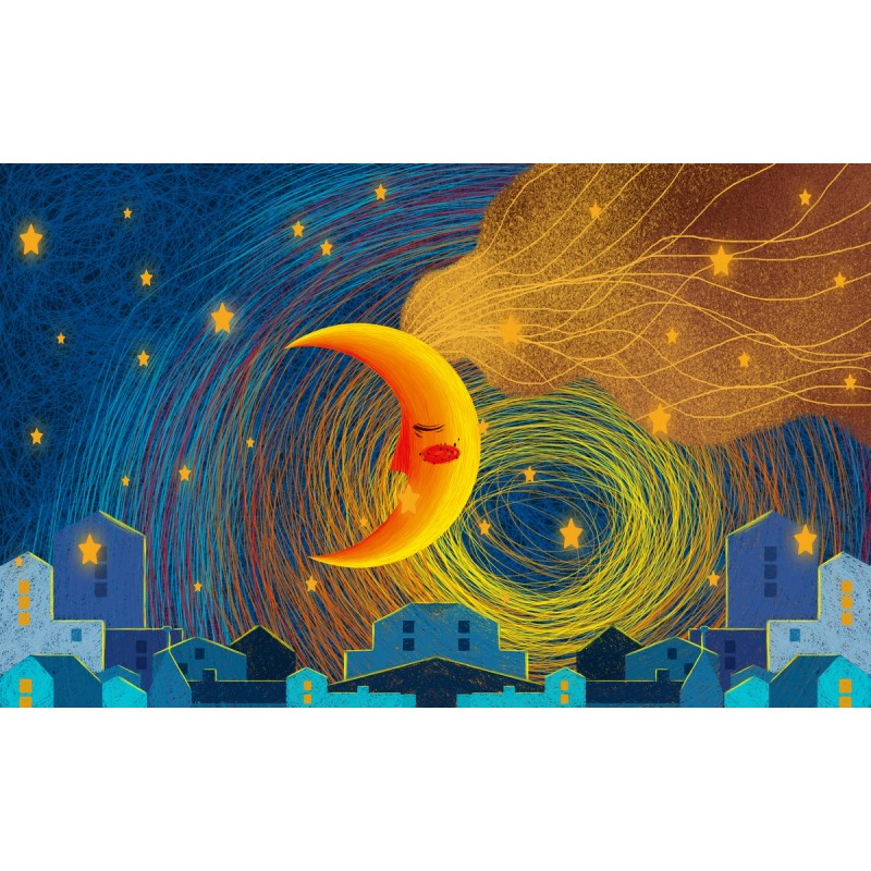 Теги: ночь, месяц, город, звезды, для детской, для мальчика, для девочки