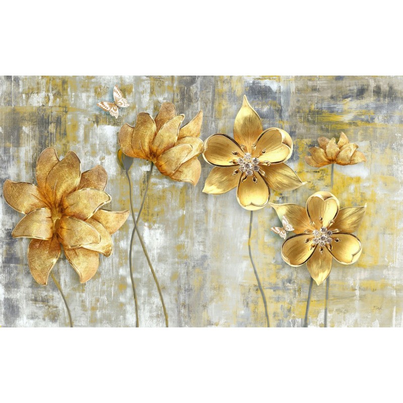 Теги: Цветы, золото, картина, мазки, лепестки, бабочки.