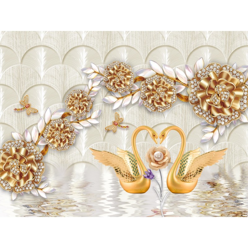 Вы можете заказать фреску "Золотые лебеди в арках" под Ваши размеры для размещения в жилом помещении или для декорирования внешней стены, дома (здания)