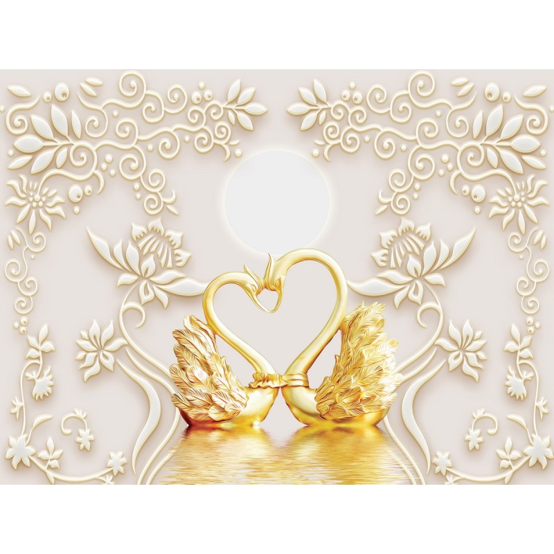 Вы можете заказать фреску "Золотые лебеди в кружевах" под Ваши размеры для размещения в жилом помещении или для декорирования внешней стены, дома (здания)
