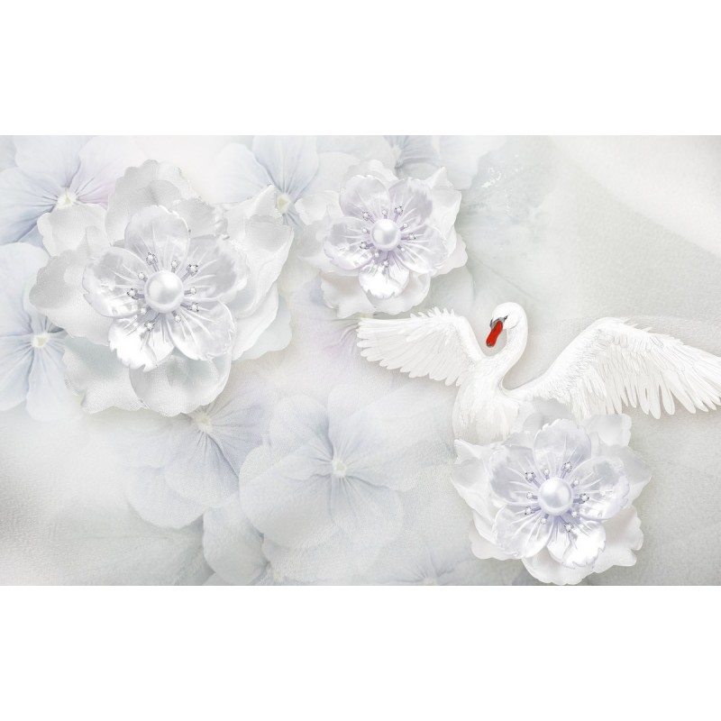 Теги: цветы, серебро, жемчуг, птица, лебедь, крылья