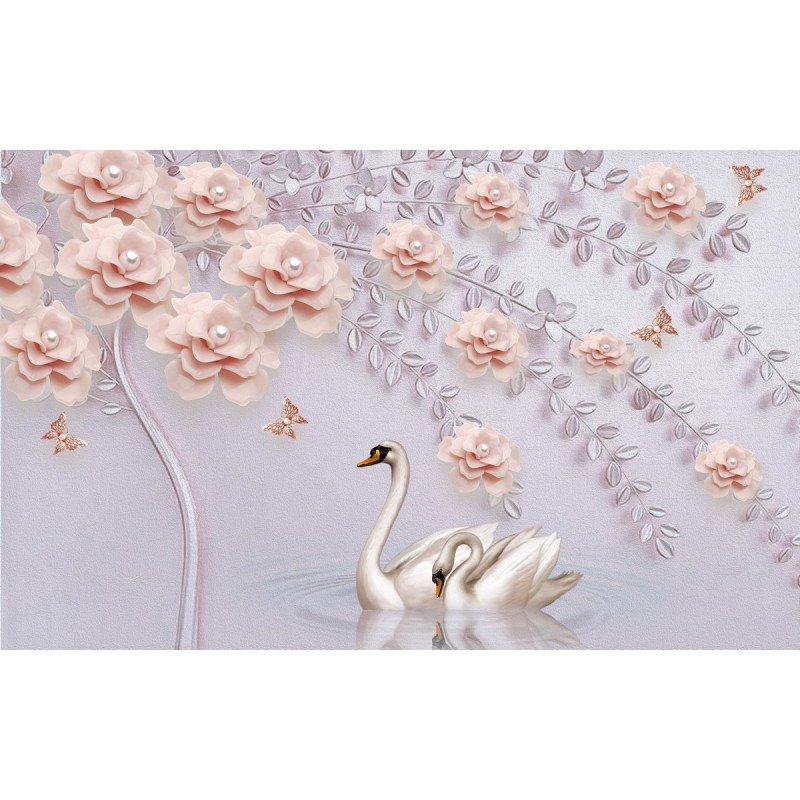 Теги: лебеди, розы, жемчуг, вода, листья, лепестки, любовь, для спальни, для гостинной