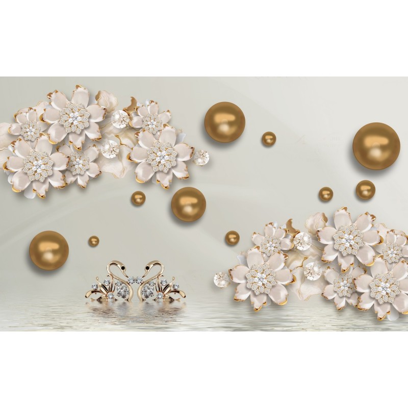 Теги: цветы, золото, лебеди, любовь, вода, жемчуг, для спальни