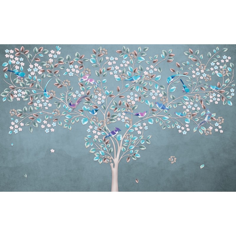 Теги: лес, цветы, дерево, птицы, волшебный, для холла, для коридора
