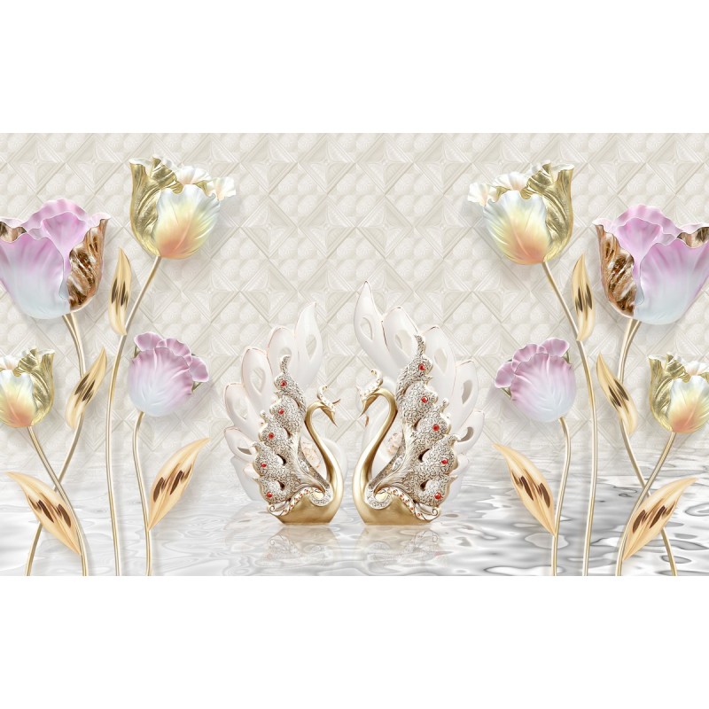 Теги: Лебеди, птицы, цветы, вода, блеск, узоры.