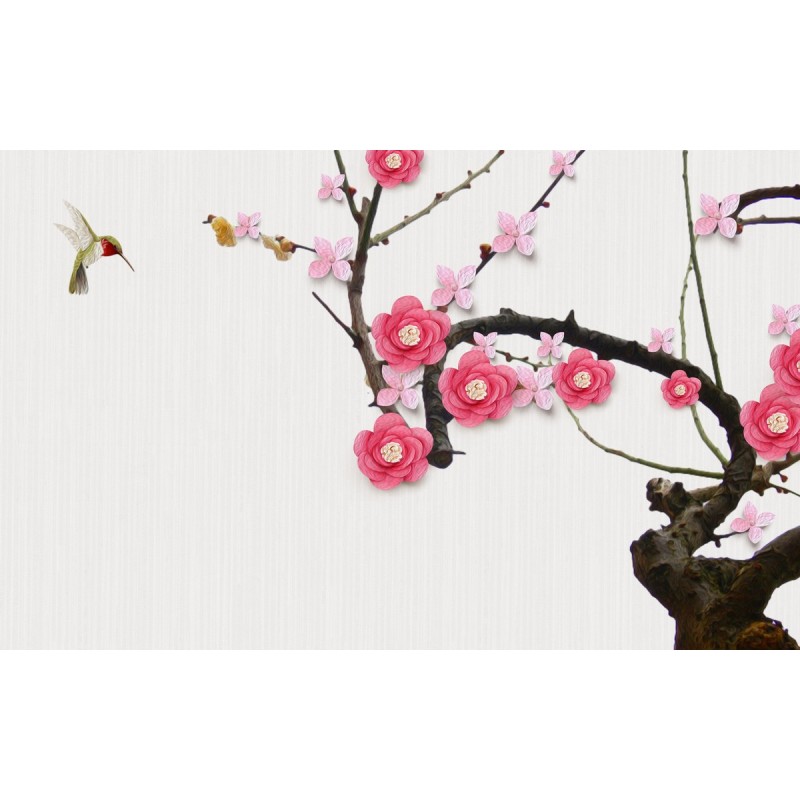 Теги: Дерево, цветение, сакура, птицы, полет, рельеф.