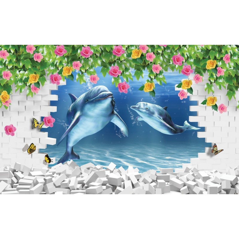 Теги: цветы, 3D, дельфины, стена, графика, для ванной, бабочки, для басейна, для детской