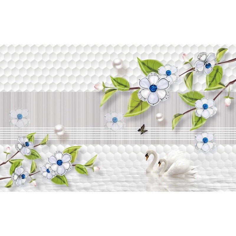 Теги: Лебеди, птицы, жемчуг, ветви, цветы, узоры.