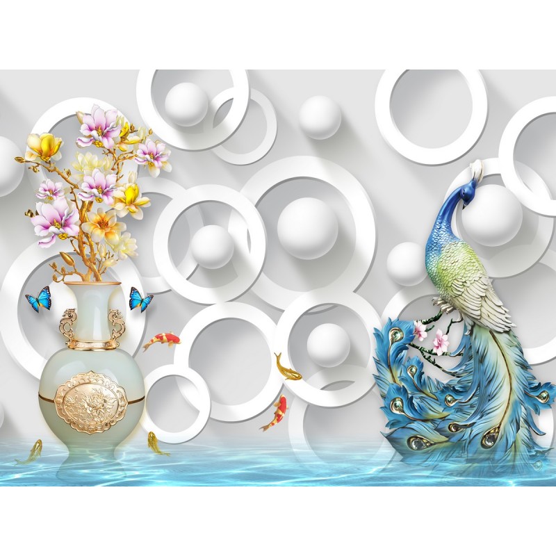 Теги: павлин, птица, ваза, цветы, 3D, шары, круги