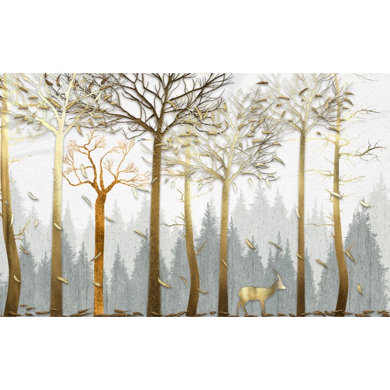 Теги: Рассвет, дерево, лес, олени, туман, золото.
