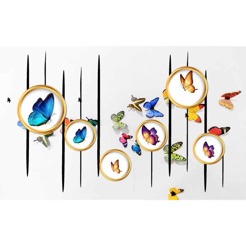 Вы можете заказать фотообои "Разноцветные бабочки в кольцах" под Ваши размеры для размещения в жилом помещении или для декорирования внешней стены, дома (здания)