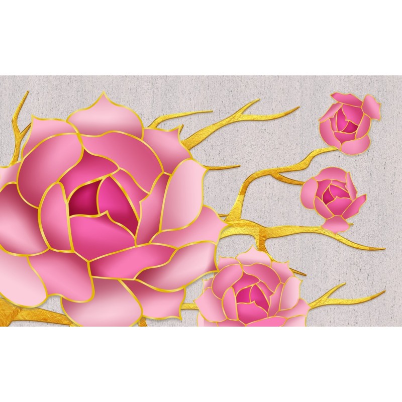 Вы можете заказать фотообои "Розовый пион в золотых гранях" под Ваши размеры для размещения в жилом помещении или для декорирования внешней стены, дома (здания)