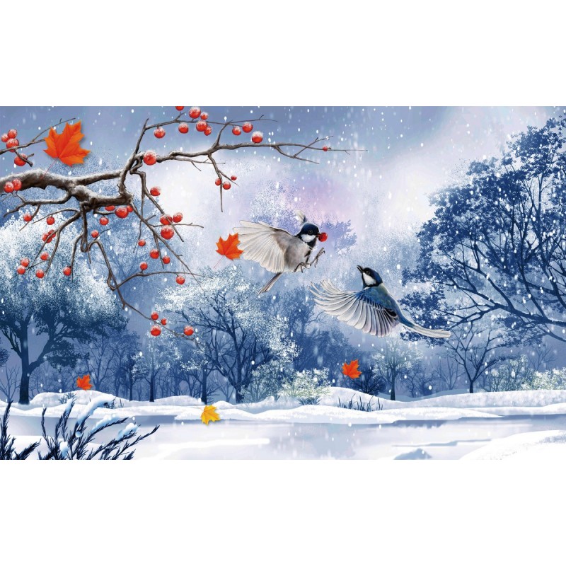 Теги: Зима, снег, синички, птицы, лес, пейзаж.