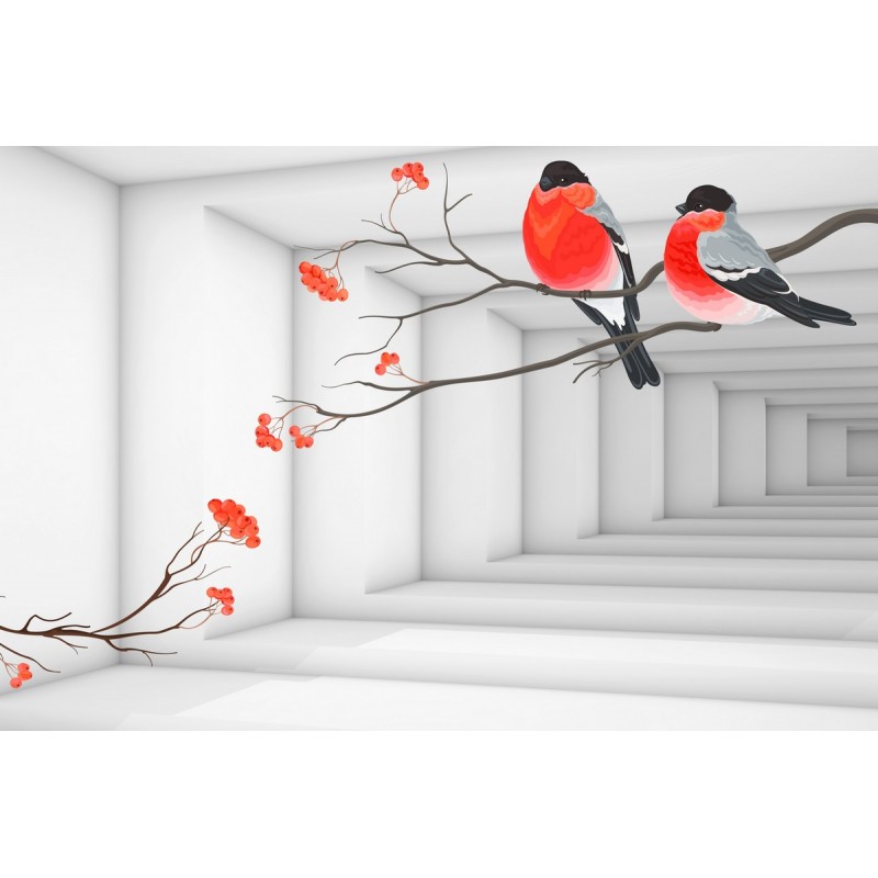 Теги: Снегири, птицы, ветви, рябина, зима, геометрия.