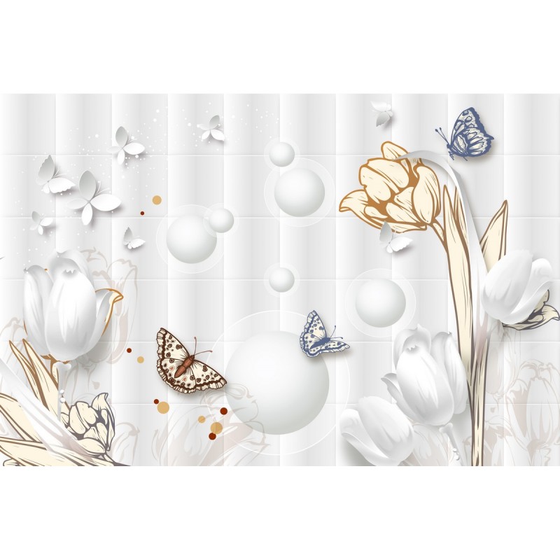 Вы можете заказать фотообои "Снежные тюльпаны с бабочками" под Ваши размеры для размещения в жилом помещении или для декорирования внешней стены, дома (здания)