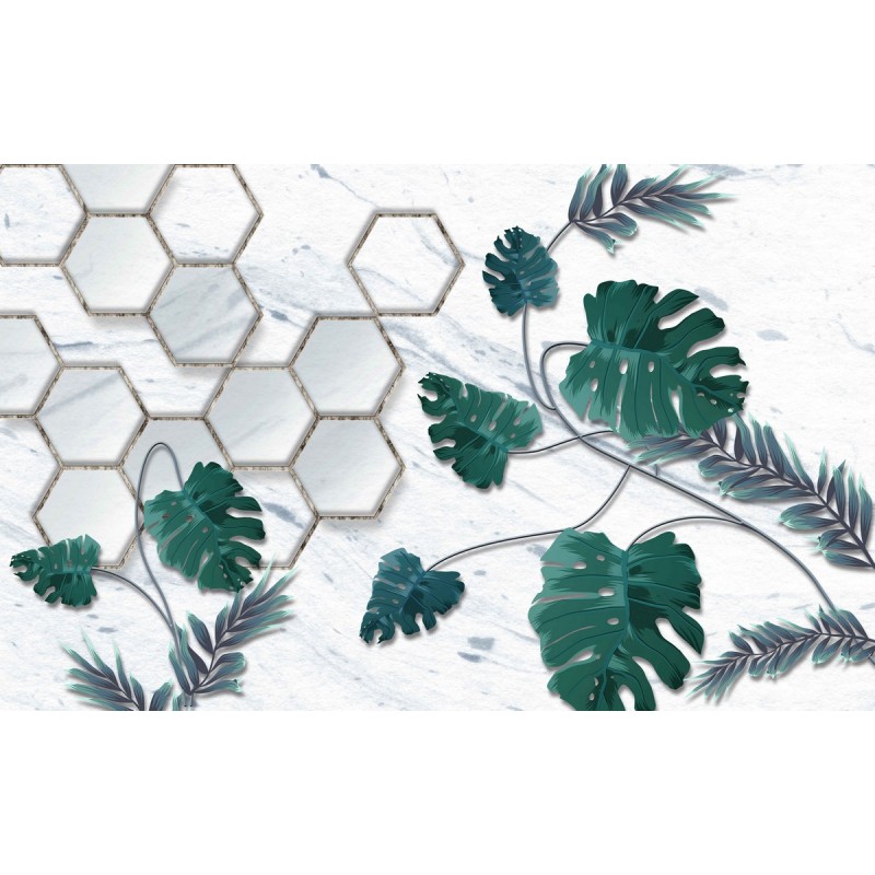 Теги: графика, геометрия, соты, листья, тропики, растения, для спальни