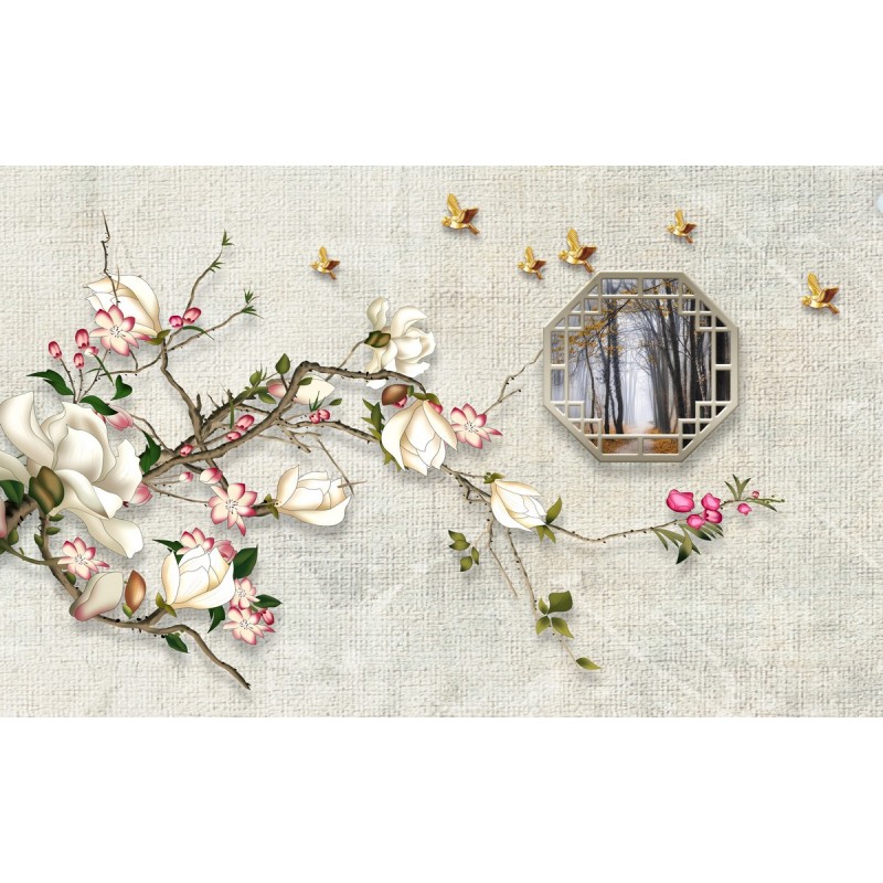 Теги: Зеркало, птицы, ветви, цветы, окно, цветение.