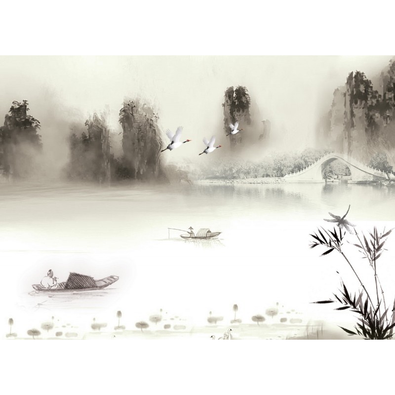 Теги: лодка, пруд, рыбак, птица, аист, горы, серый, туман