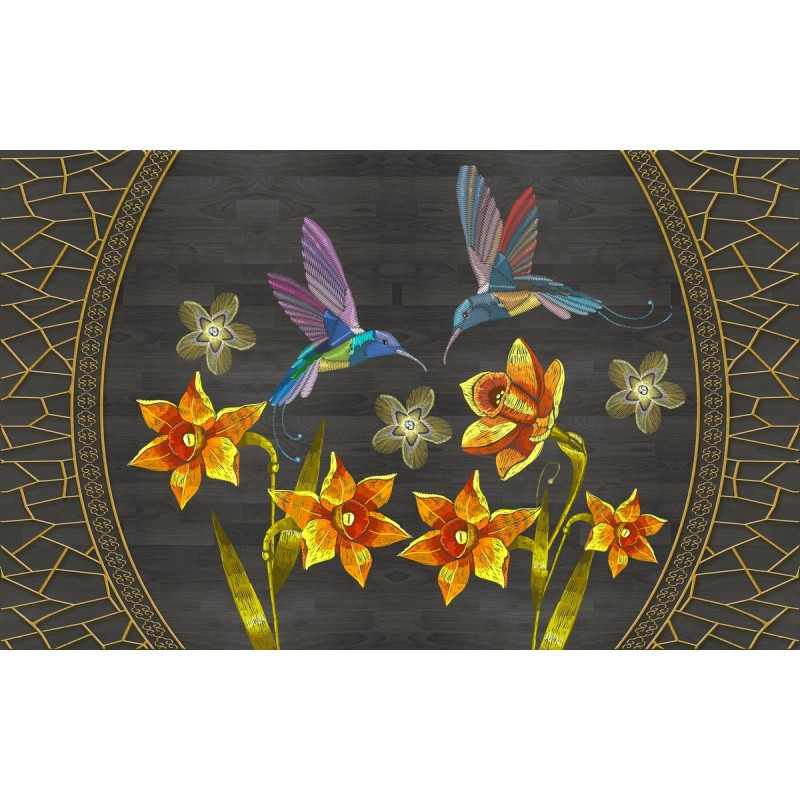 Теги: птицы, колибри, цветы, узоры, золото, нарцисс
