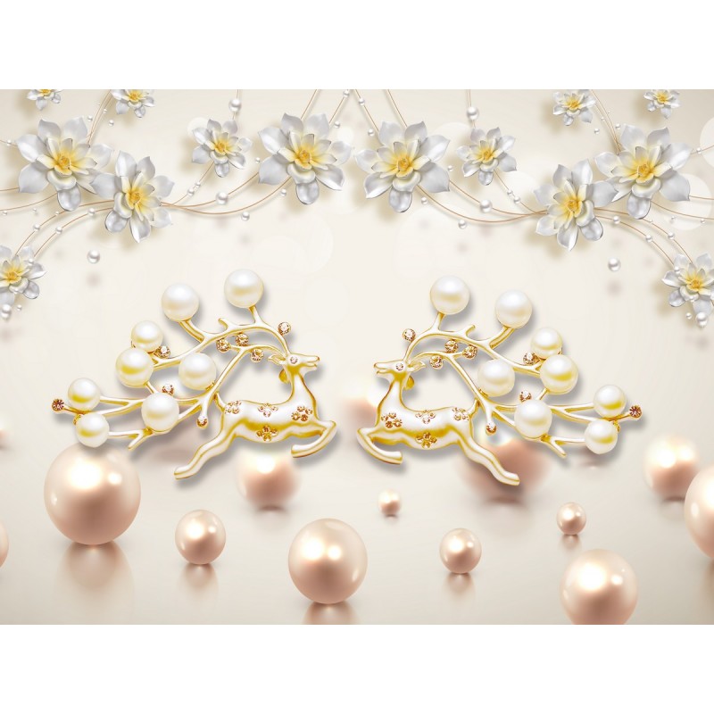 Теги: жемчуг, золото, олени, цветы, линии, шары
