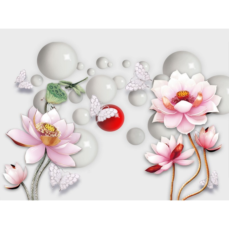 Теги: Лотос, цветы, бутоны, бабочки, сферы, объем.