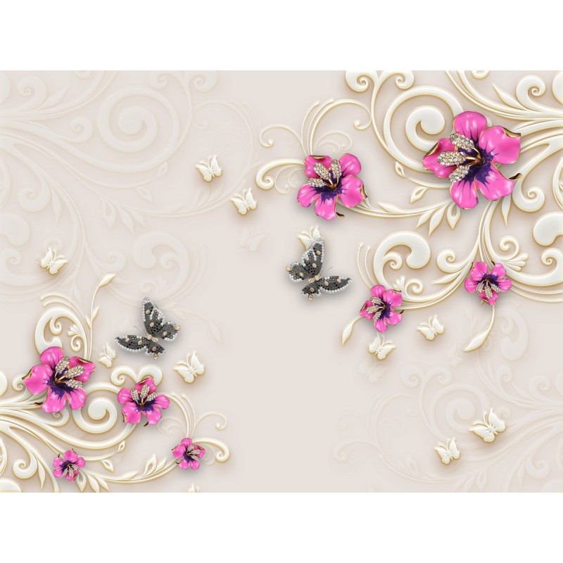 Теги: цветы, букет, лилии, бабочки, 3D, графика, узор
