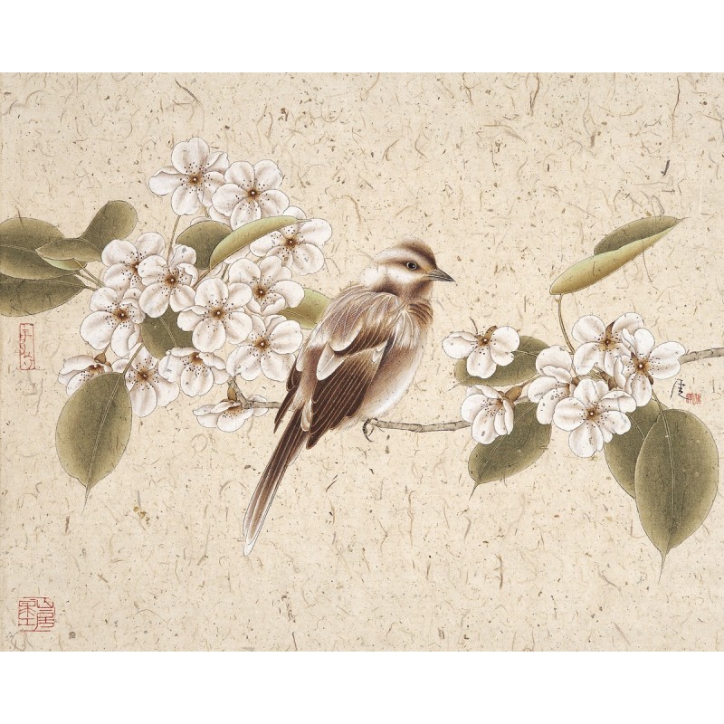 Теги: птица, цветы, дерево, серо-бежевый, для гостинной, для холла