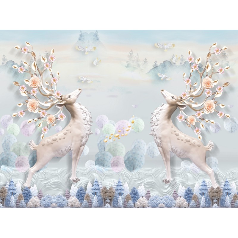 Вы можете заказать фотообои "Волшебные олени в лесу" под Ваши размеры для размещения в жилом помещении или для декорирования внешней стены, дома (здания)