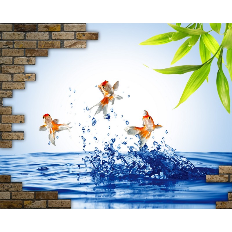 Теги: Вода, всплеск, рыбки, свежесть, стена, листья.