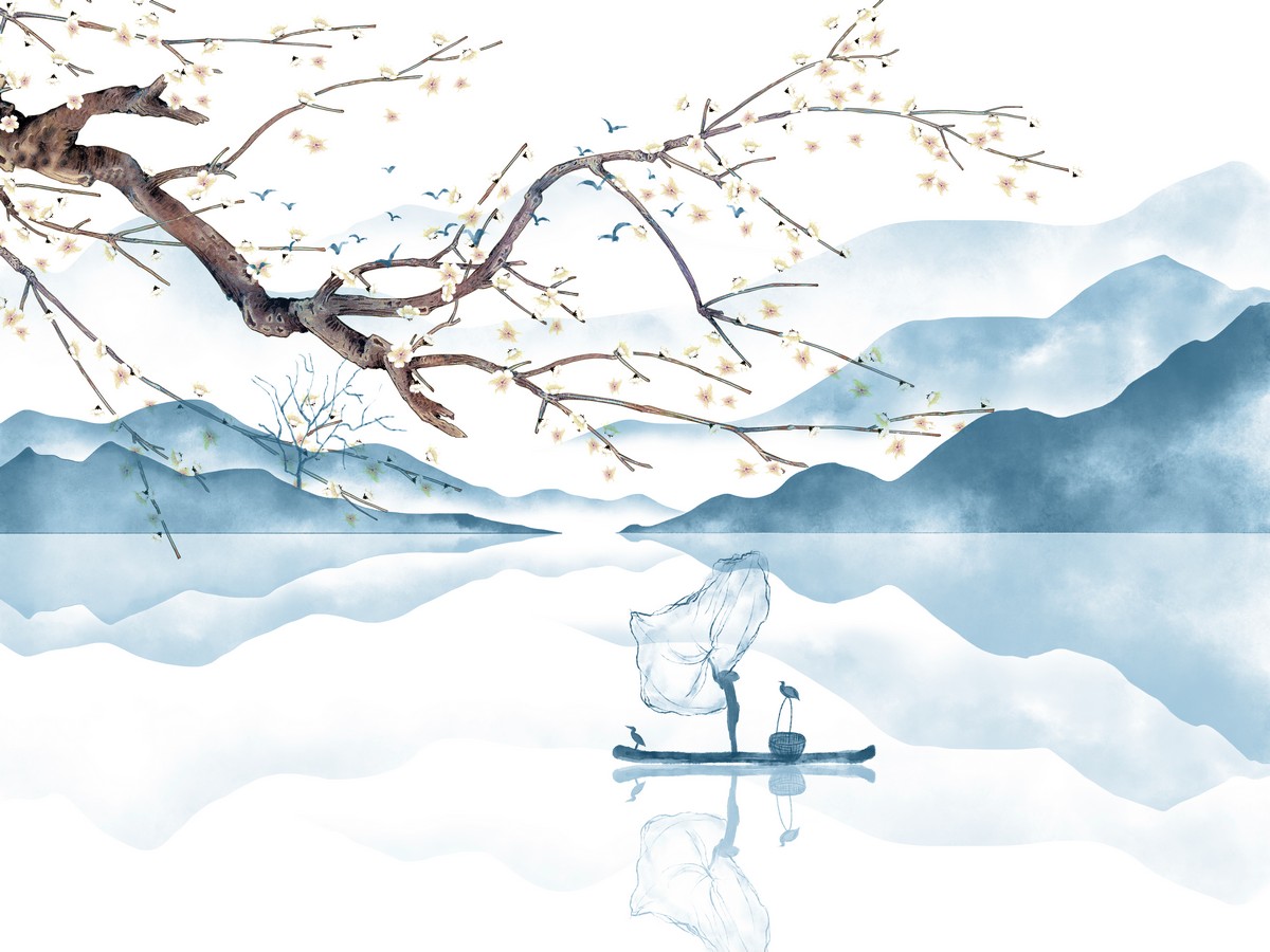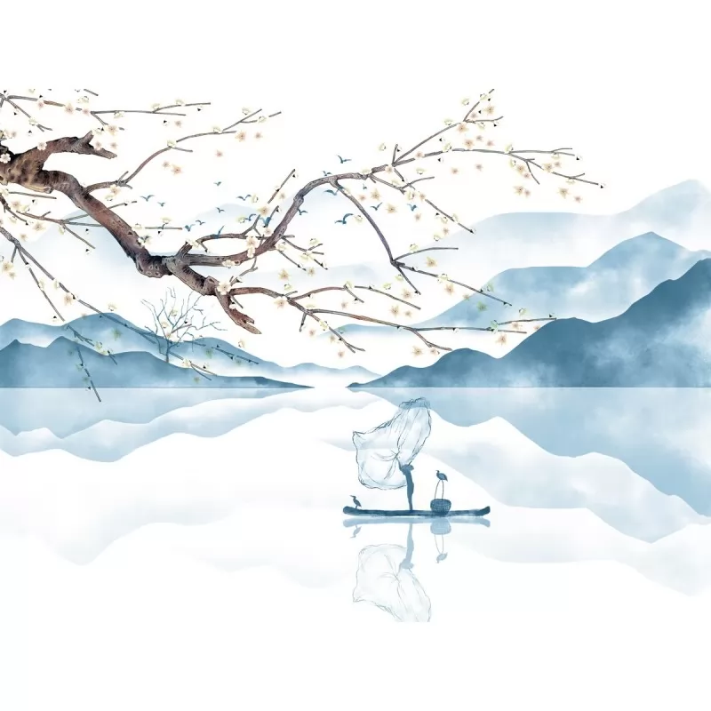 Теги: природа, япония, рыбак, лодка, сакура, спокойствие, безмятежность, для спальни, для гостинной