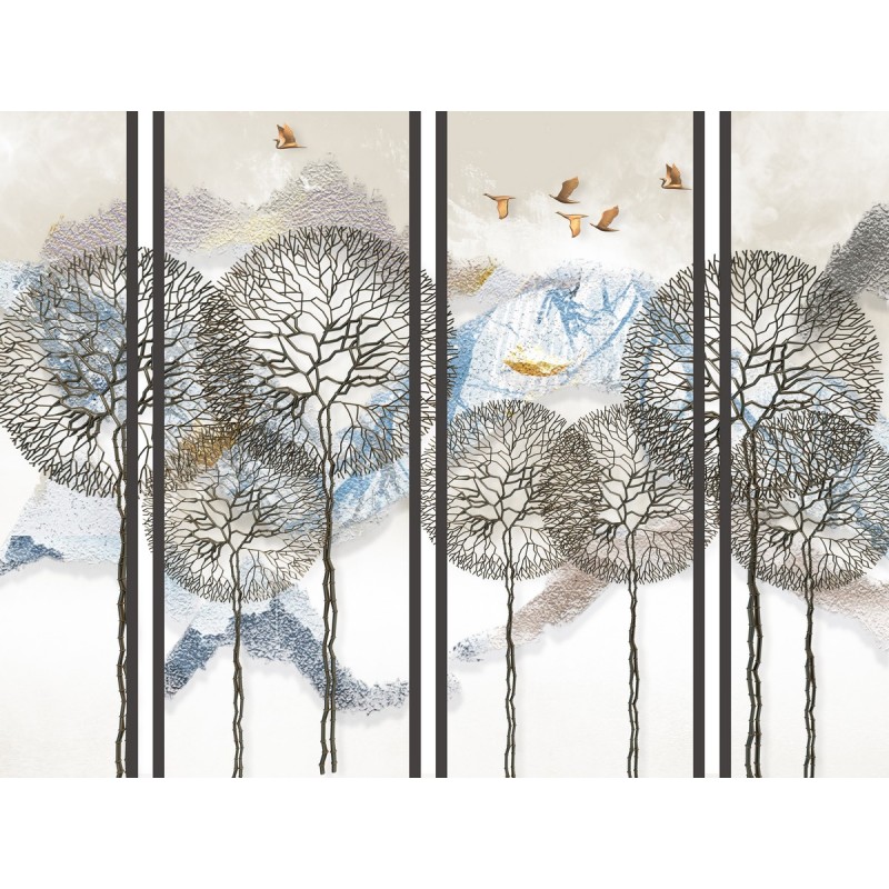 Теги: Лес, дерево, птицы, зима, горы, природа, линии.