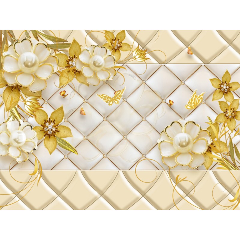 Теги: цветы, золото, ромбы, жемчуг, бабочки, для гостинной, для холла