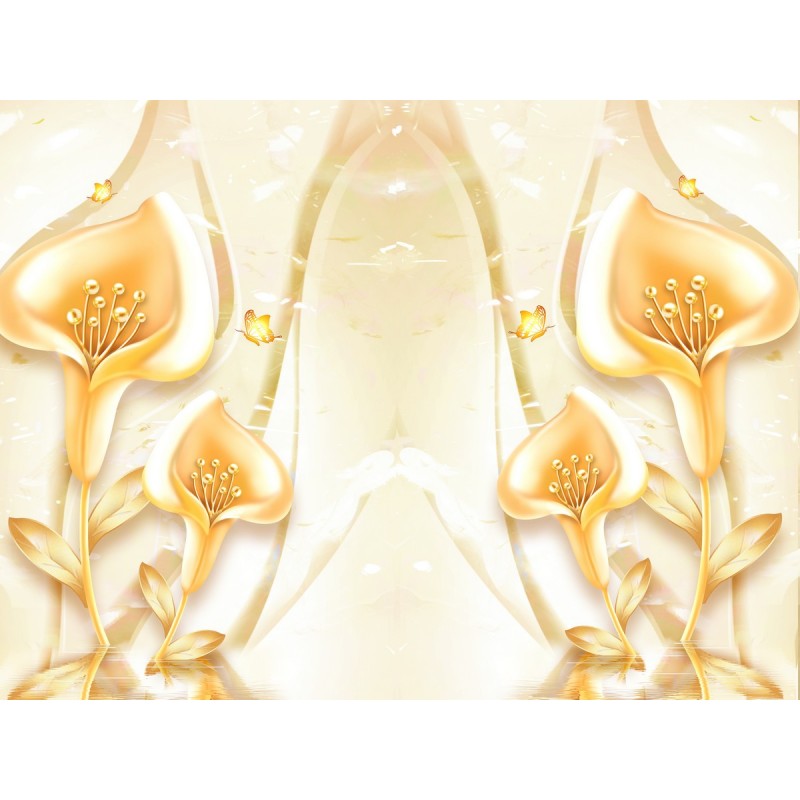 Вы можете заказать фотообои "Золотые каллы" под Ваши размеры для размещения в жилом помещении или для декорирования внешней стены, дома (здания)