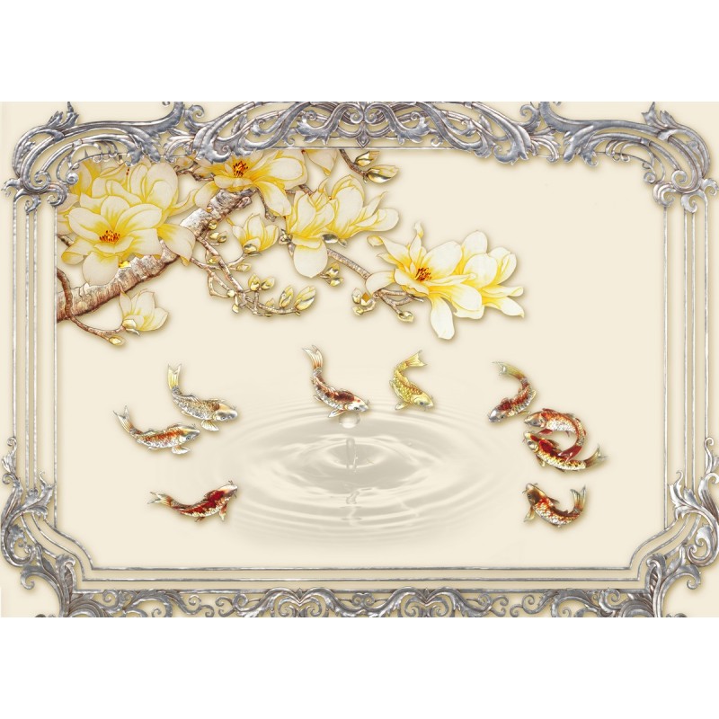 Теги: дерево, магнолия, цветы, рыбки, пруд, для гостинной, для холла, для коридора