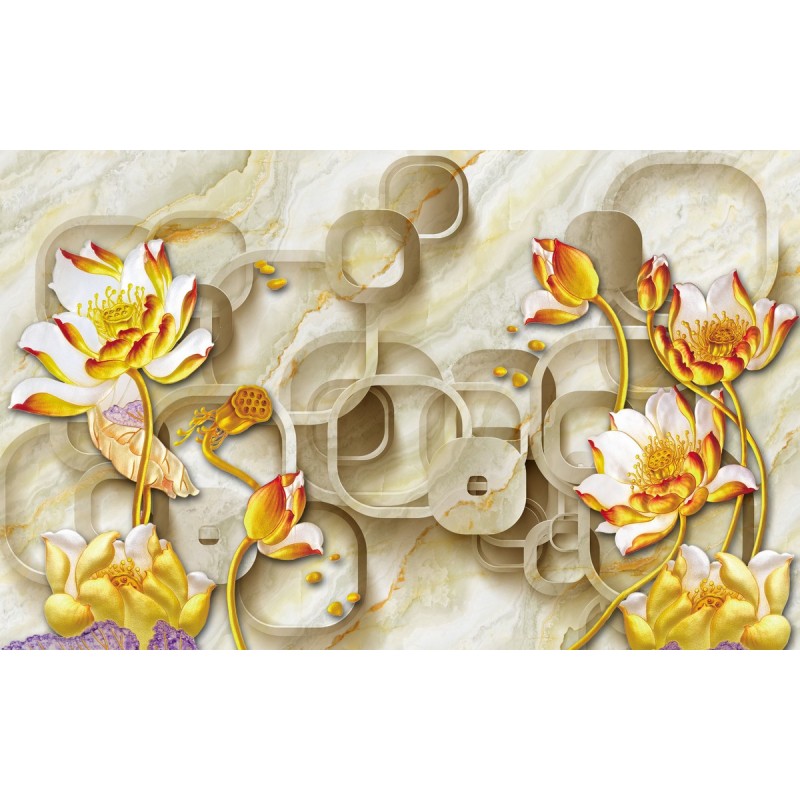 Вы можете заказать фотообои "Золотые кувшинки в геометрическом мреморе" под Ваши размеры для размещения в жилом помещении или для декорирования внешней стены, дома (здания)