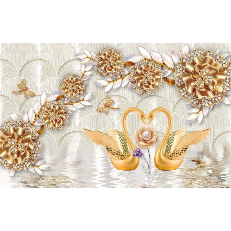 Вы можете заказать фотообои "Золотые лебеди в бриллиантах" под Ваши размеры для размещения в жилом помещении или для декорирования внешней стены, дома (здания)